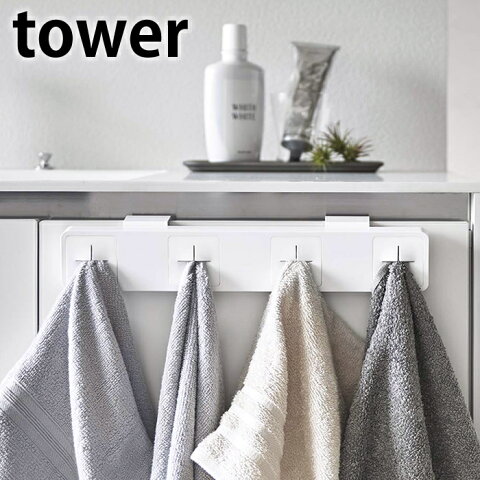 分別タオルホルダー 4連 タワー tower 引っ掛け 壁付け タオル掛け タオルハンガー 5197 5198 キッチン 扉 壁面 洗面所 トイレ タオル干し フェイスタオル おしゃれ シンプル 山崎実業 yamazaki