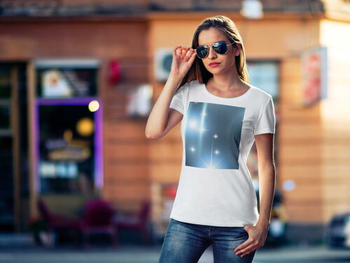 tシャツ レディース 半袖 白地 デザイン S M L XL Tシャツ ティーシャツ T shirt 000419 キラキラ 光 青